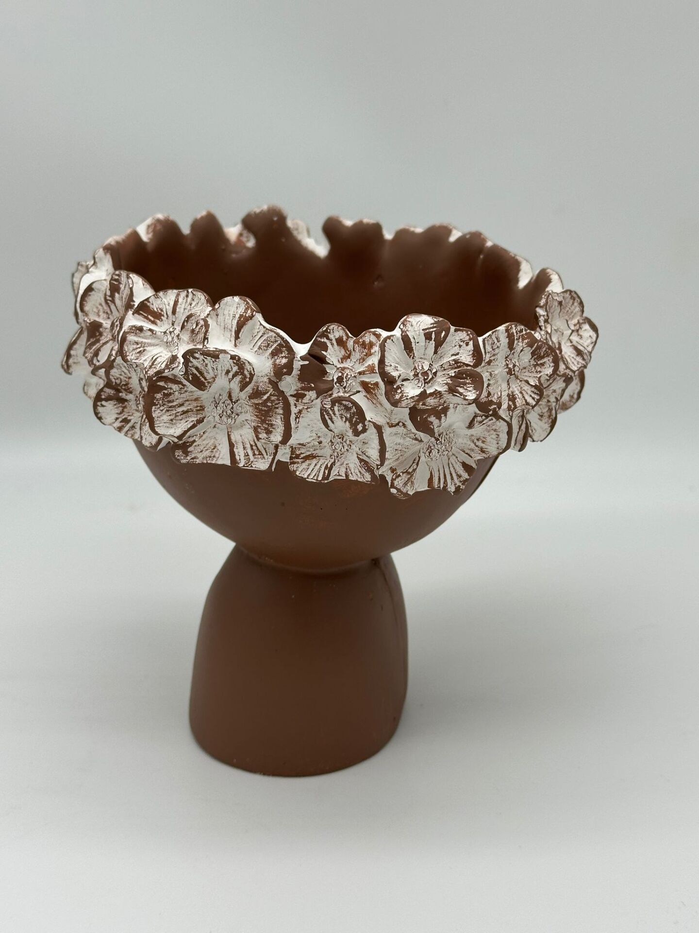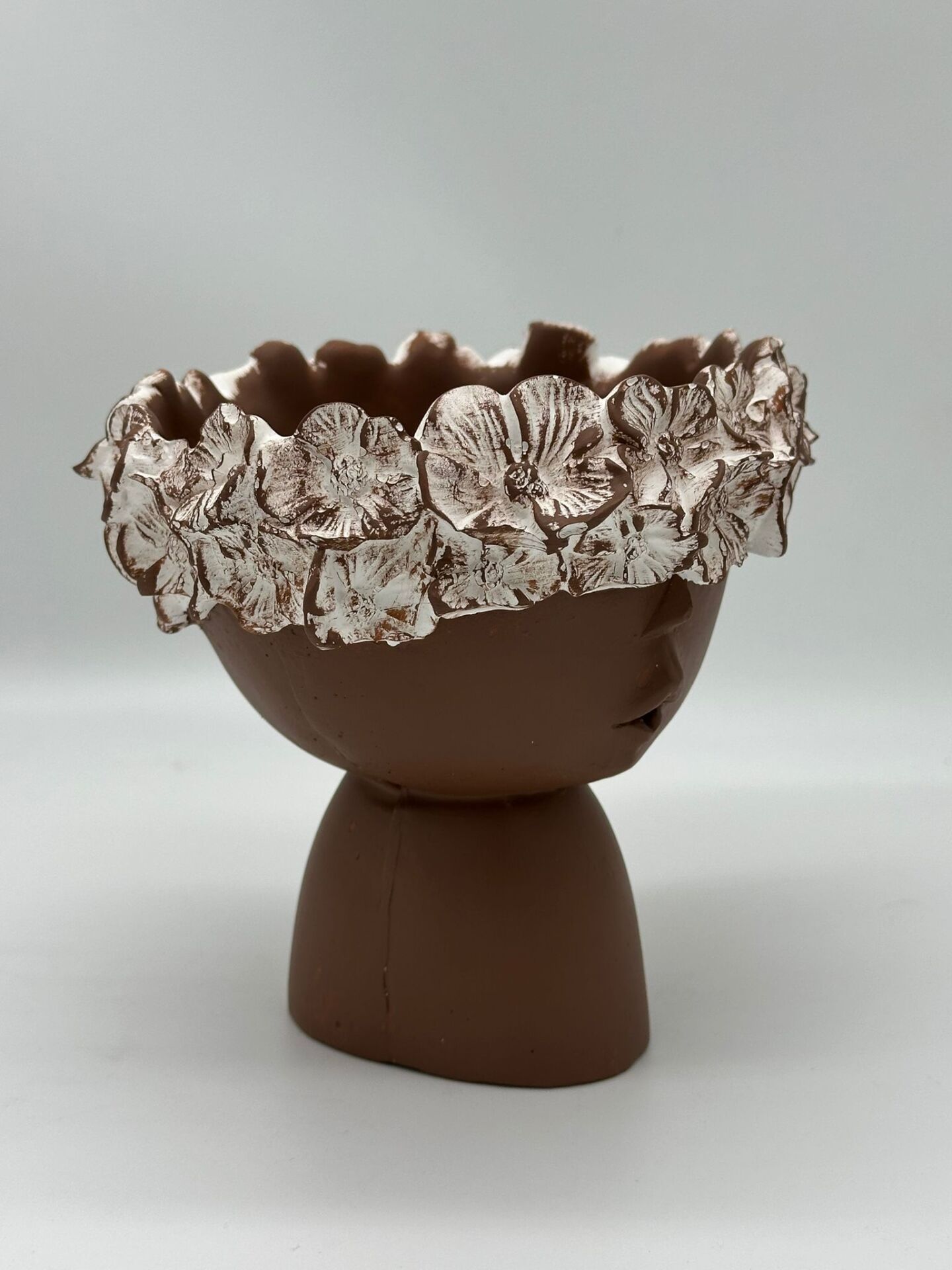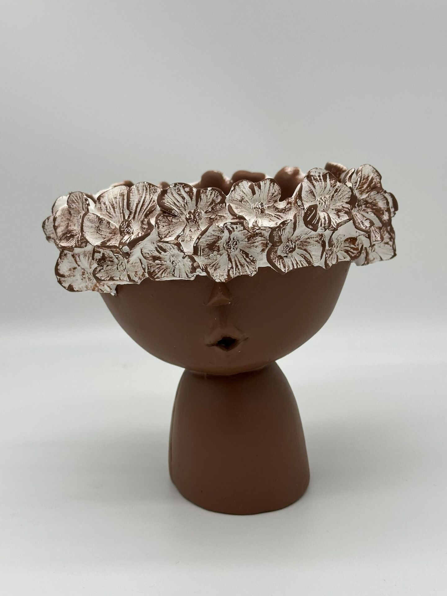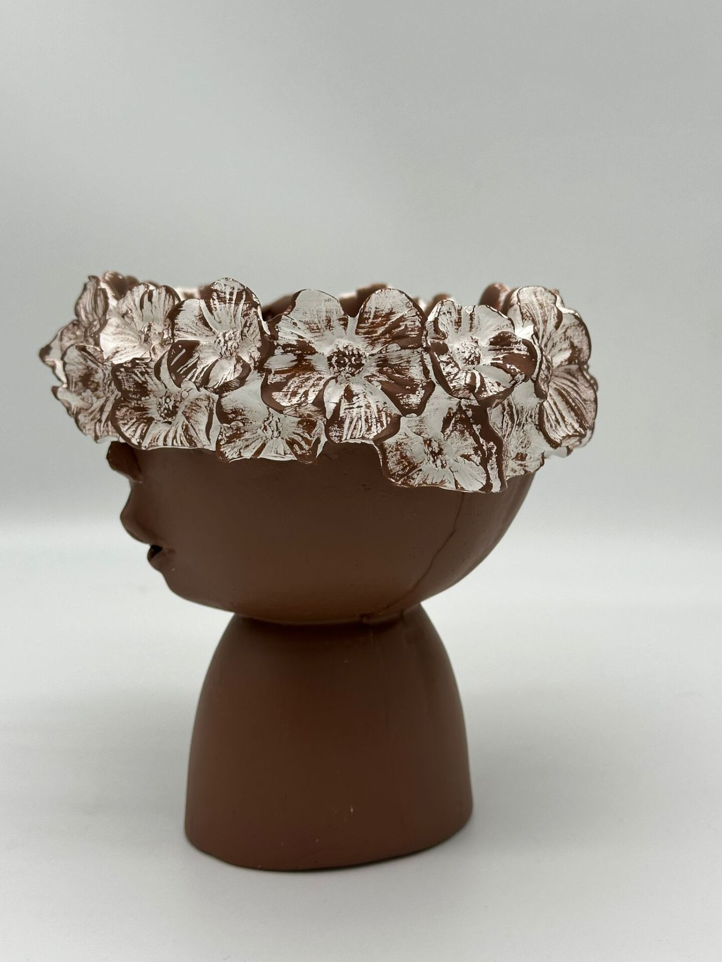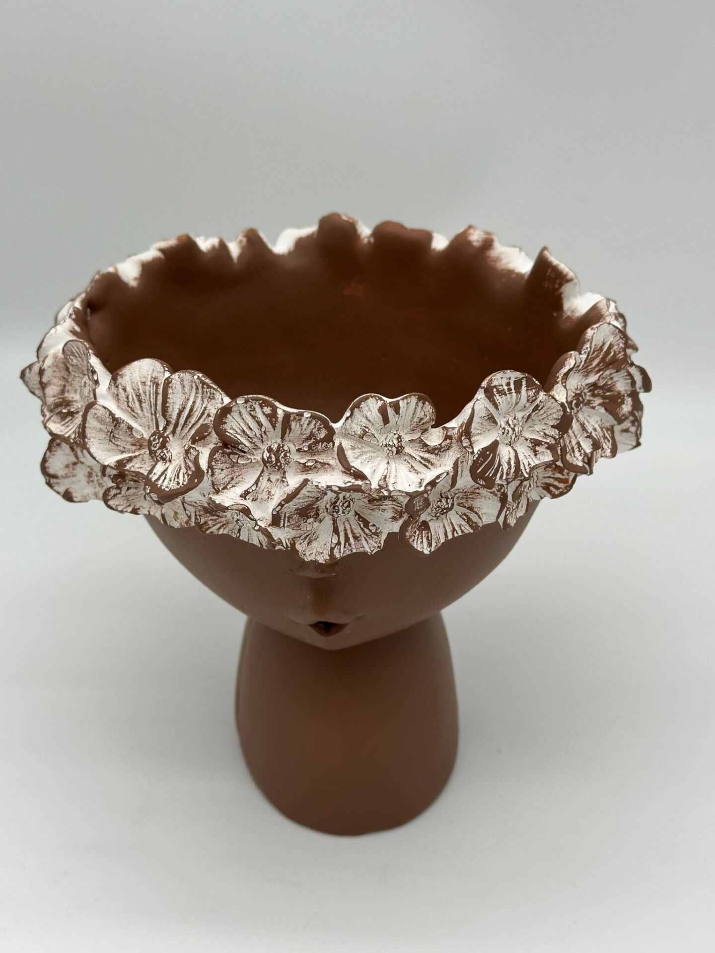 Çiçekli Kız Vazo Küçük Kahverengi;