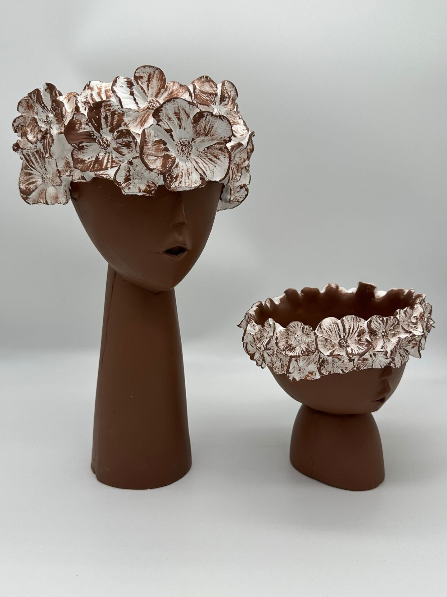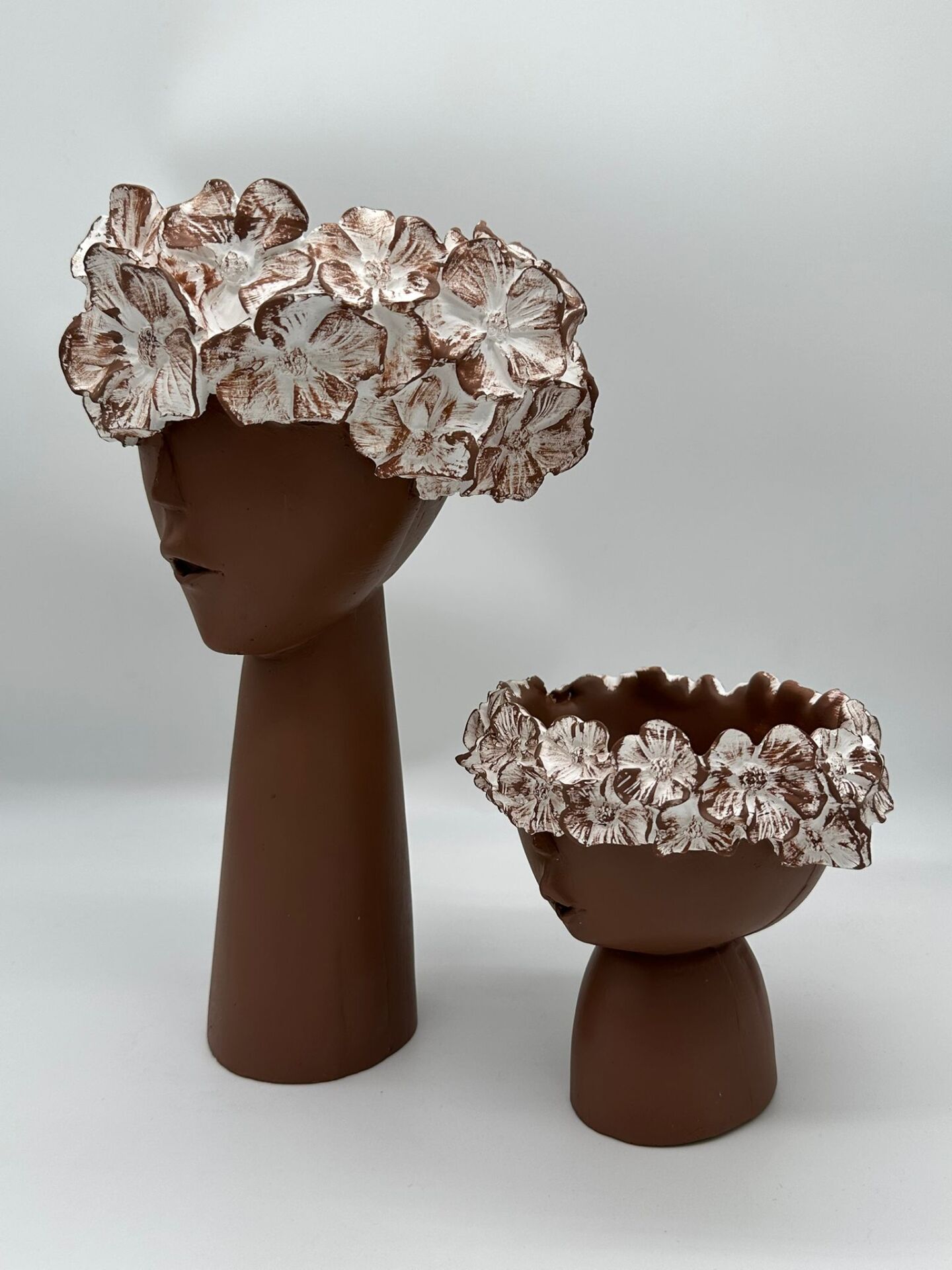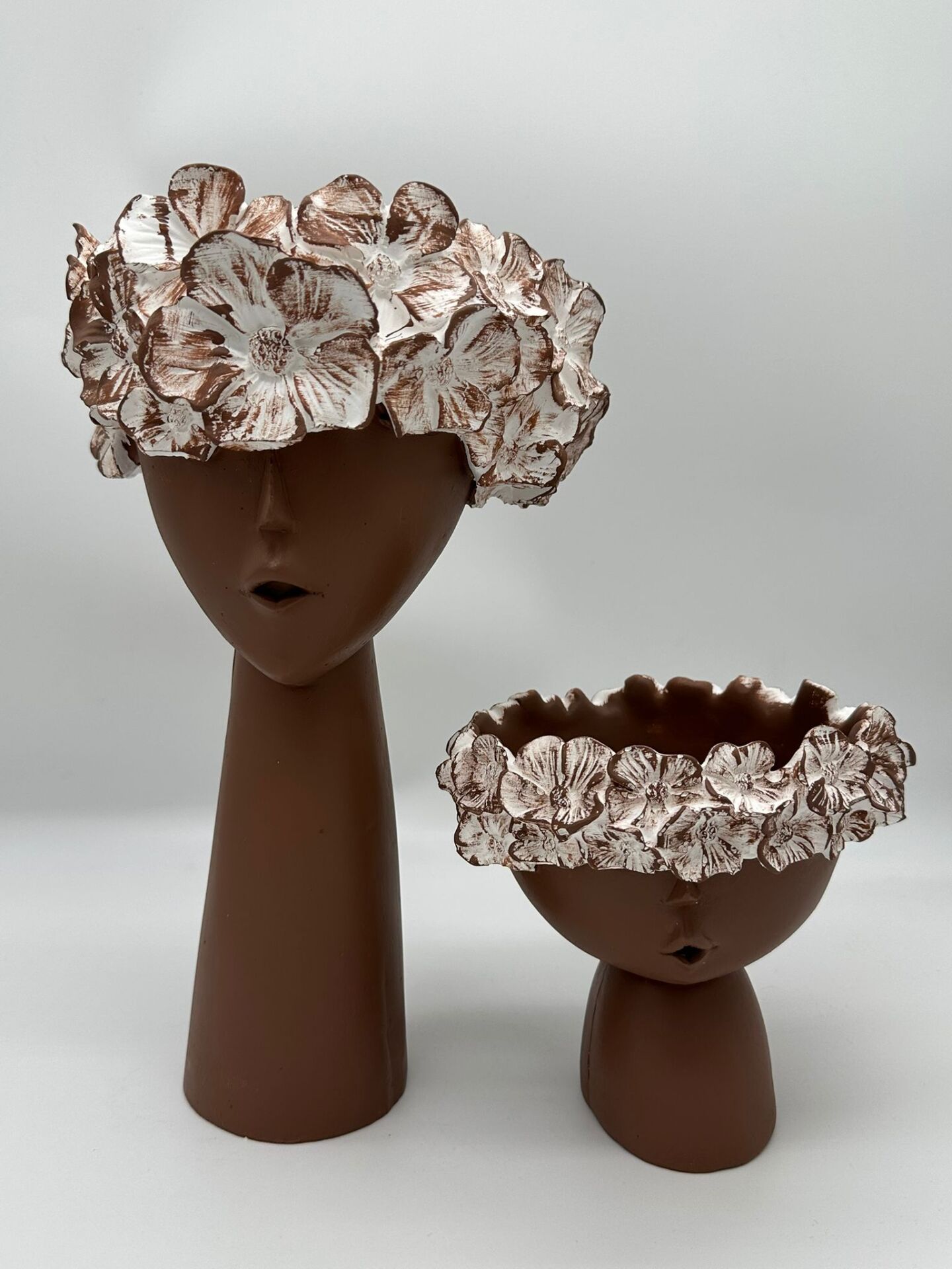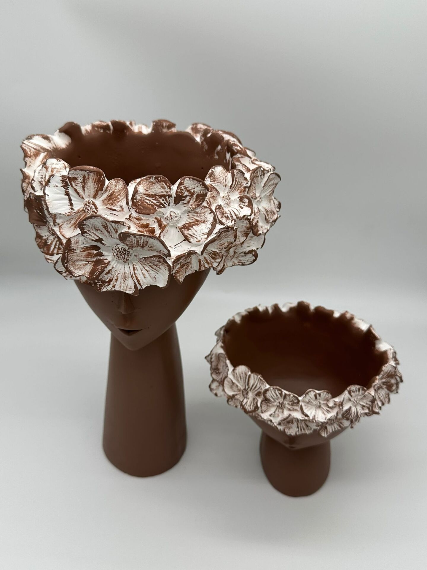 Çiçekli Kız Vazo Küçük ve Büyük Kahverengi;